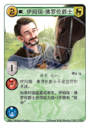 如果时值盛夏或寒冬,伊姆瑞·佛罗伦爵士获得能力值+2并拥有“致命”。